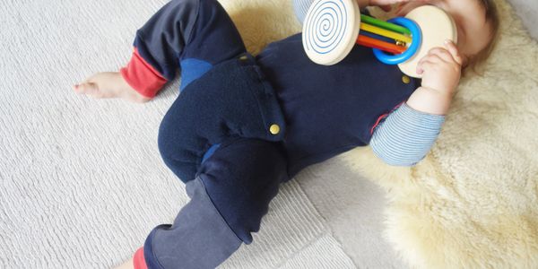 Wir verwenden meist Kaschmir oder Merinowolle - weich und anschmiegsam sind die Kinder eingehüllt.