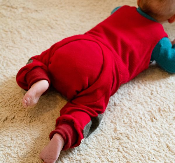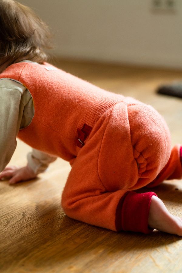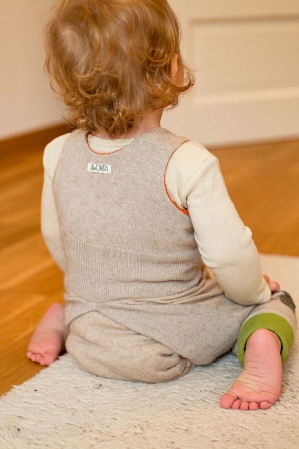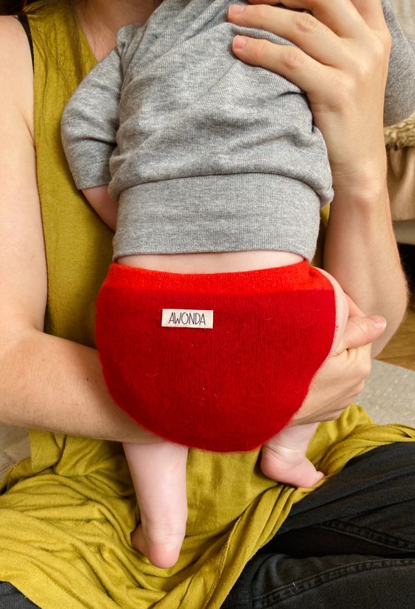 Die AWONDA Abhaltehose ist nicht nur eine Hose! Sie ist eine Hose, eine Windel und ein Leibchen, das Herz und Nieren warm hält. Noch ein Hemdchen drunter und das Kind ist schon angezogen.