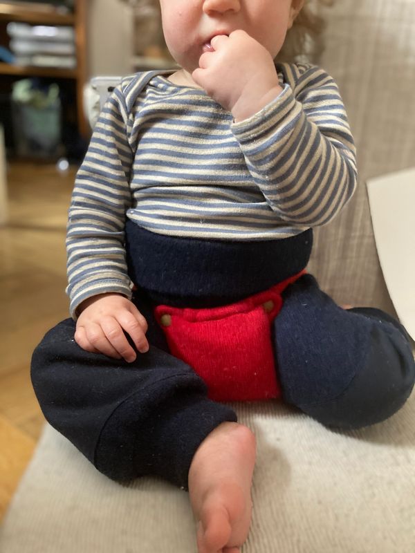 Wir verzichten bewusst auf einen festen Gummibund um Hüfte und Bäuchlein, um die Verdauungsregion nicht einzuengen.